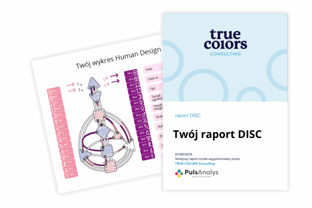 Pracujemy na certyfikowanym narzędziu DISC Ewy Gadomskiej (TrueColors Consulting), stosowanym w najlepszych programach rozwoju biznesowego.